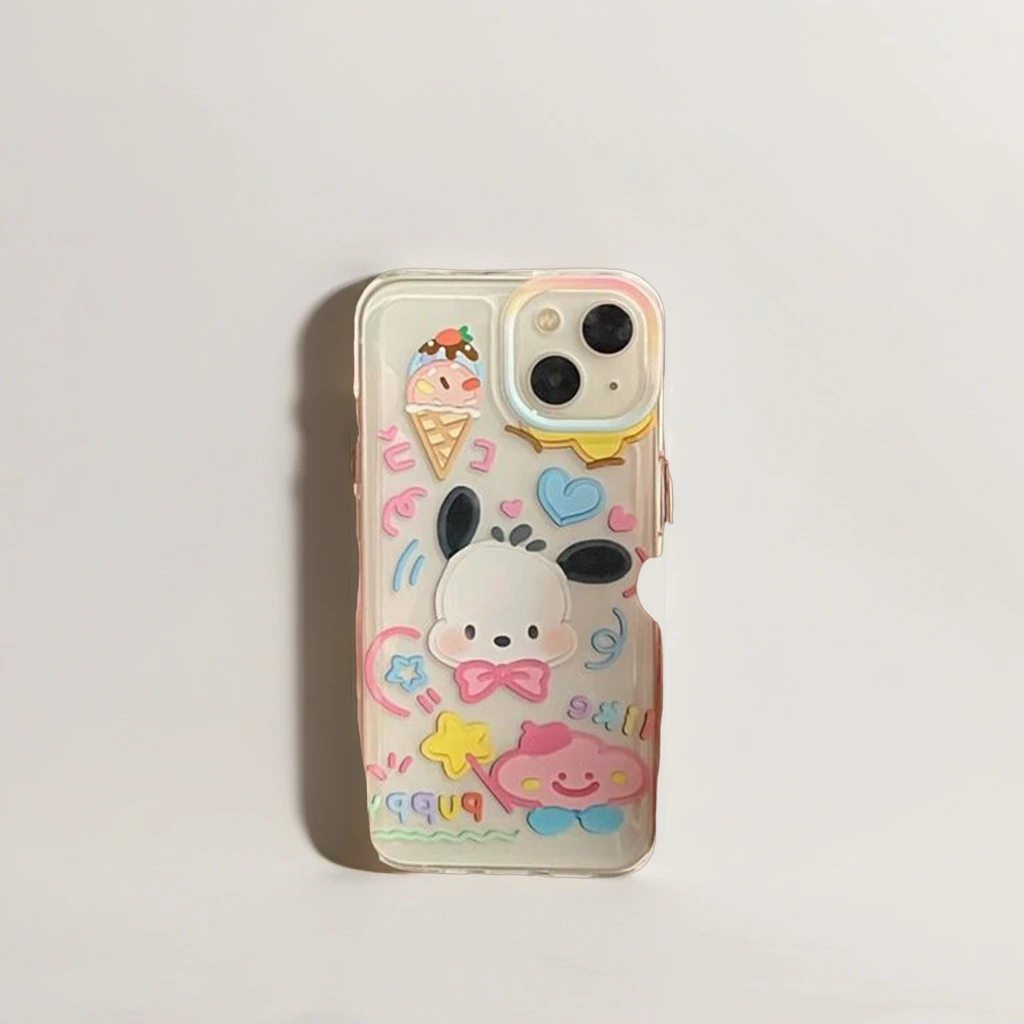 Clear Flexible Phone Case with Colorful Cartoon Embellishments